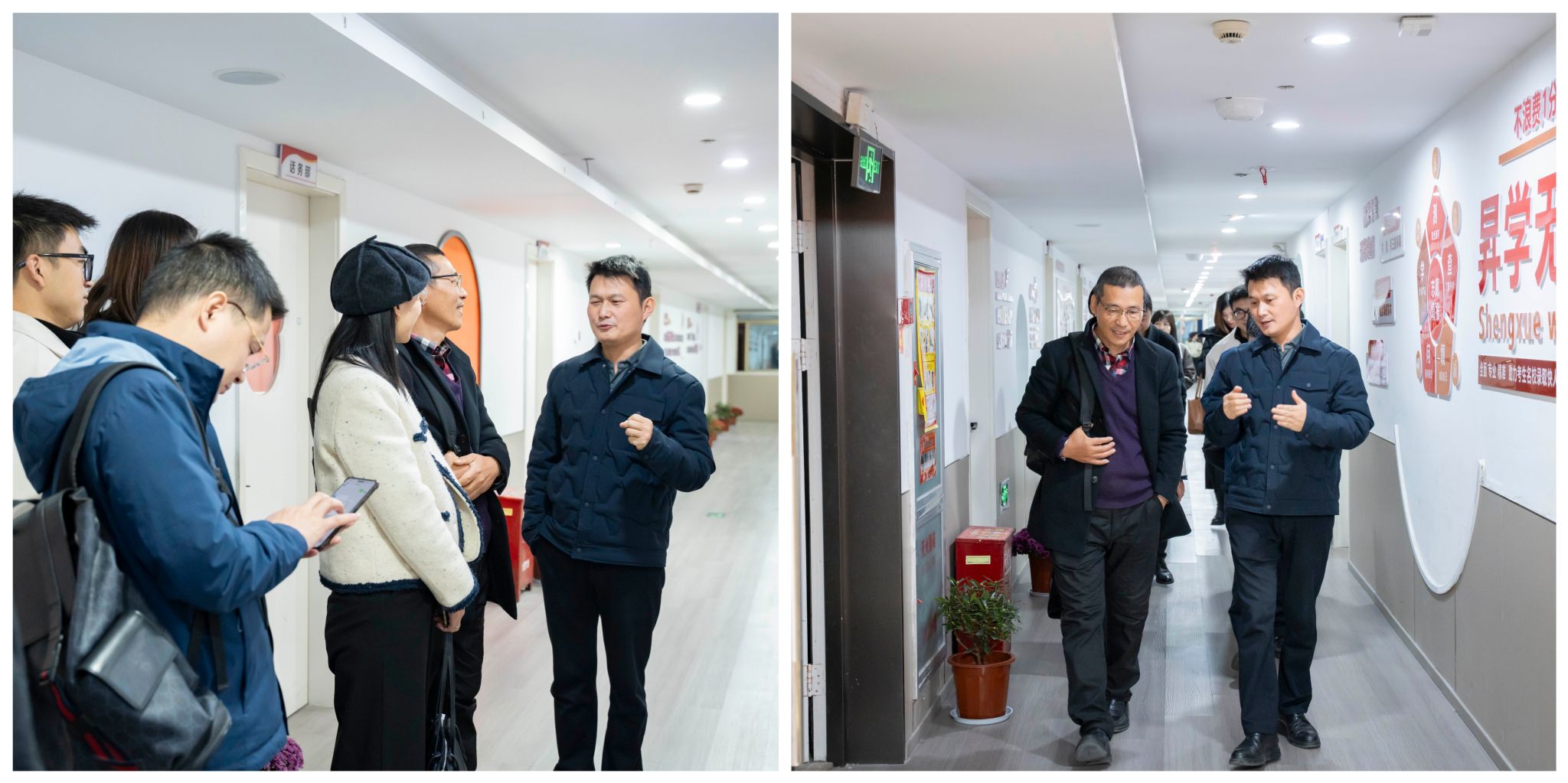 交流活动结束后,在张尉校友的陪同下,学院领导和老师一行实地考察了重德教育总部。通过实地走访、现场观摩等方式,详细了解了企业的运营模式、工作环境与发展前景,为进一步推进校企合作、搭建实习就业平台提供了直观参考。