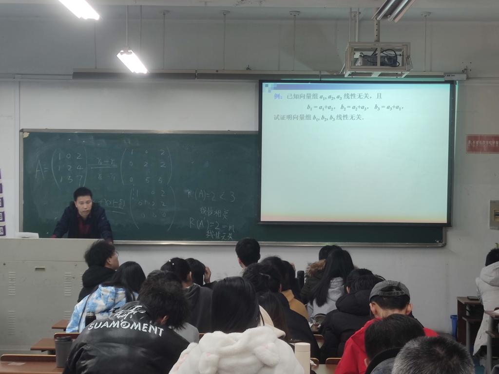 熊伟老师通过例子来引入本节课的内容,开头带领大家回顾了向量组的线性组合以及相关性,慢慢开始本节课的主题。在课堂上大家踊跃讨论,熊老师为了增加互动随机抛出几个问题让大家一起思考,并请同学问答后进行解答。在熊老师的带领下课堂气氛良好,获得听课老师的好评。