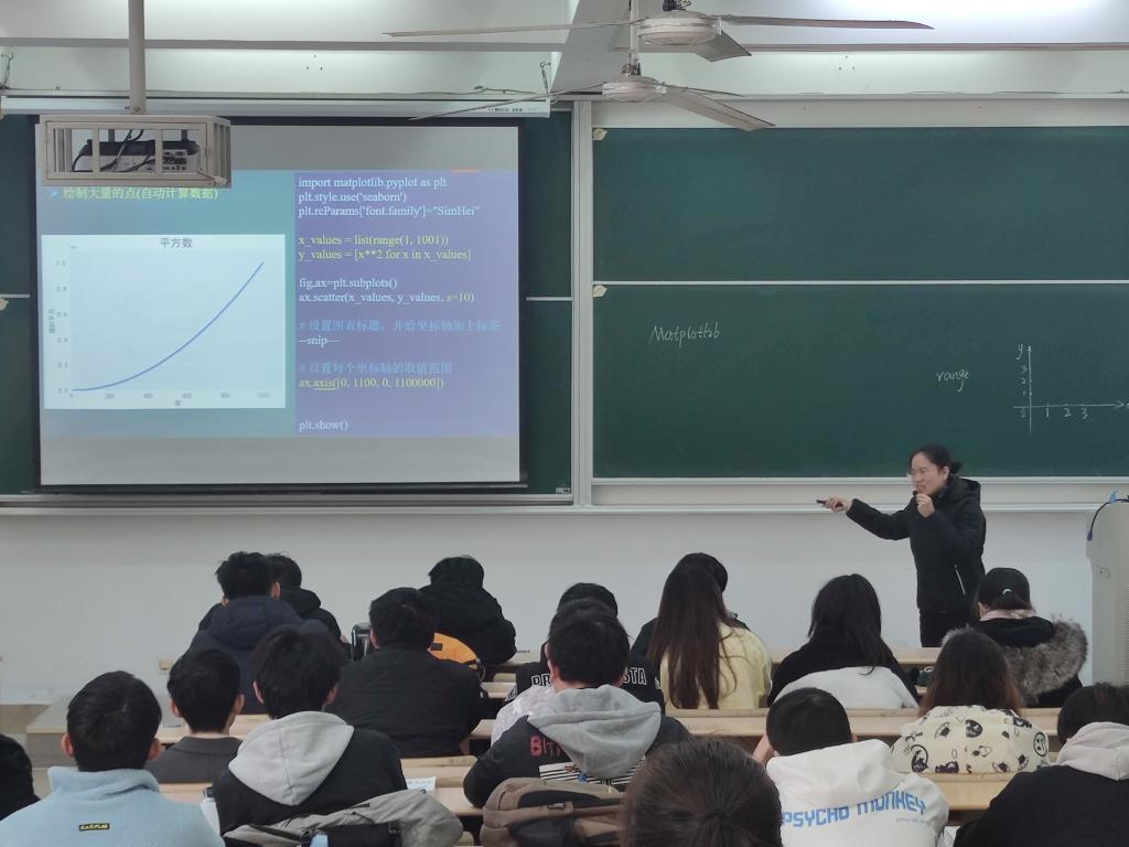 杨庚佼老师通过数据集、数据分析、数据可视化展开本节的内容。通过杨老师的充分备课在课堂上输出了大量的内容,同学们十分收益。杨老师还利用多媒体设备向同学们展示了与课堂内容相关的视频等,使得课堂气氛活跃,学习趣味性强。