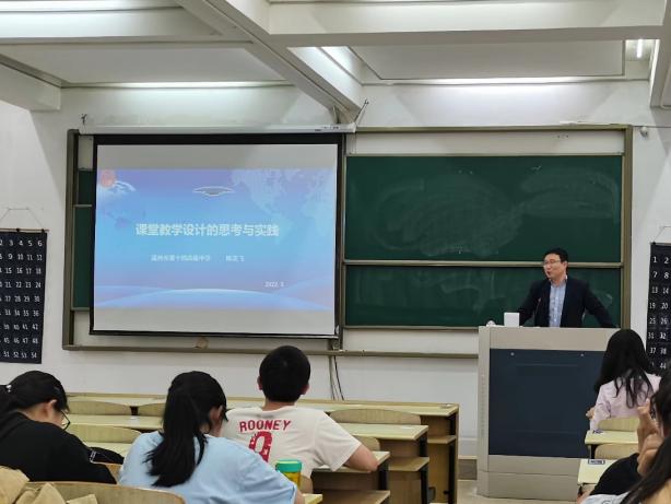 2022年5月27日,温州大学数理学院开展了以《课堂教学设计的思考与实践》为主题的讲座,本次讲座由正教授级中学高级教师、温州第十四高级中学副校长陈芝飞老师主讲,温州大学数理学院曹蒙蒙老师主持。