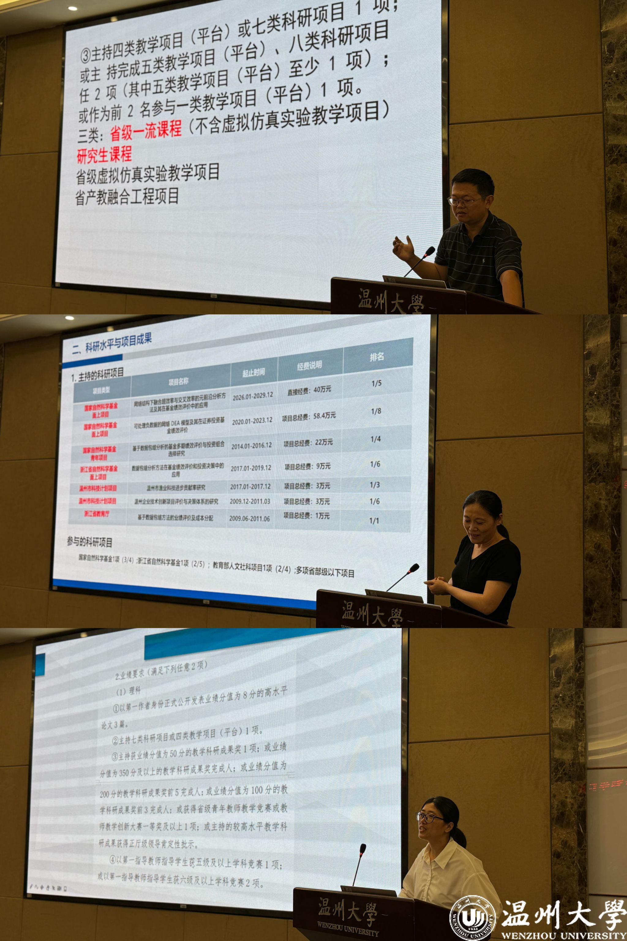 杨胜、林瑞跃、段延敏三位教授结合自身成长经历,从不同维度分享了宝贵经验。杨胜教授聚焦教学能力提升,详细拆解了青年教师教学竞赛的备赛技巧与教学成果积累路径,强调通过优化教学方法、拉近师生距离,在教书育人中实现自我价值;林瑞跃教授以科研道路上的坚持为例,讲述了从硕士到博士、从讲师到教授的奋斗历程,鼓励青年教师正视挑战,通过持续学习、反复打磨项目申报书,在科研领域久久为功;段延敏教授围绕学科竞赛指导展开分享,介绍了带领学生参与“挑战杯”等赛事的经验,提出以学生为主体、提前积累成果、强化第三方评价的竞赛攻略,为青年教师兼顾教学科研与育人工作提供了实践参考。