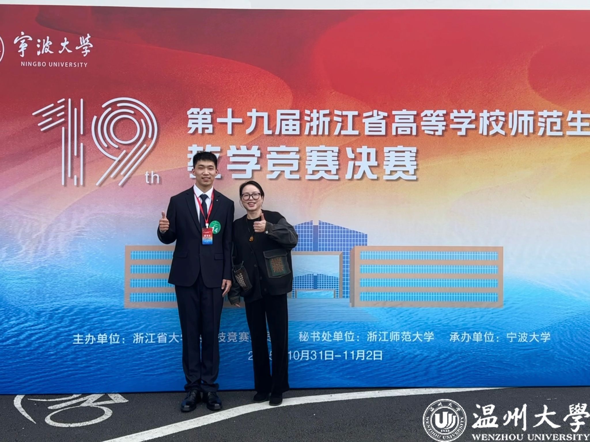 金秋季节,2025年10月31日至11月2日,浙江省高等学校第十九届师范生教学技能竞赛决赛顺利举行,来自全省20余所高校的400余名优秀学生齐聚宁波大学。经过激烈角逐,我院数学与应用数学(师范)和物理学(师范)专业的五名参赛选手在比赛中均斩获佳绩。由徐彦辉老师指导的中学数学组的吴奕绪、赵伊婷同学荣获一等奖,张天悦同学荣获三等奖,黄以可同学荣获优胜奖;由黄晓虹老师指导的综合二组的李冠增同学荣获二等奖。据悉,此次数学组一等奖全省总共才5名同学获奖,我院能获得2席,创造了历史最好成绩。