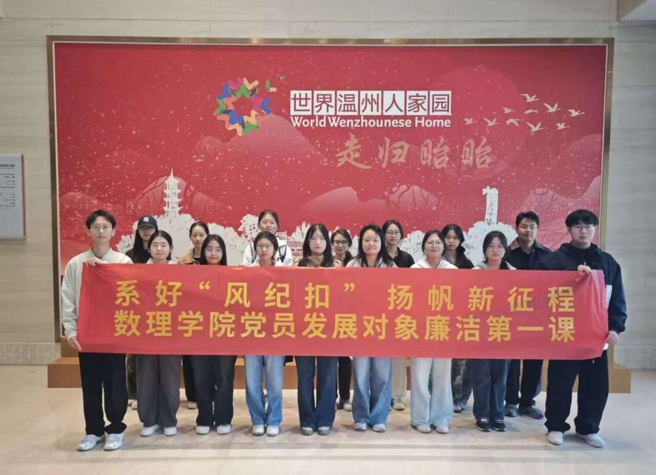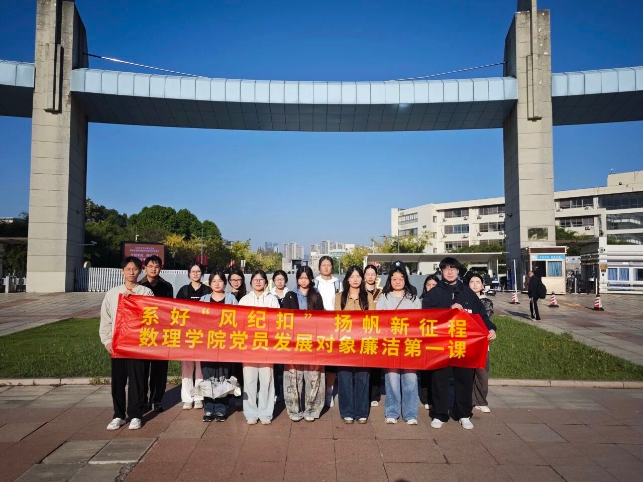 为深入学习贯彻党的二十大精神,进一步提升党员发展质量,筑牢新发展党员廉洁自律思想根基,温州大学数理学院组织15名党员发展对象开展“系好‘风纪扣’扬帆新征程”党员发展对象廉洁第一课。11月16日上午8:30,各学生支部党员发展对象们精神饱满地集结于南校区,以一张庄严的合影开启了这场涤荡心灵的廉洁教育之旅。