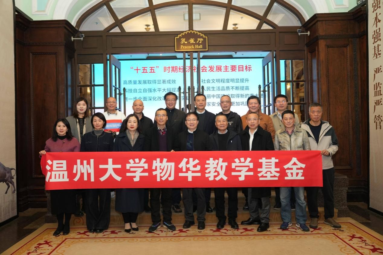 随后,交流会在湘财证券人寿12楼大会议室正式召开。会议伊始,湘财基金原董事长、81级物理校友王小平先生对温州大学一行的到访表示热烈欢迎,湘财证券总裁周乐峰先生详细介绍了湘财证券的发展历程、核心业务布局以及近年来在数字化转型、科技赋能金融等方面的建设情况。随后,物华教学基金理事会理事长吴桂初围绕物华教学基金的运作情况、资金使用情况、后续资助规划等展开详细介绍。湘财证券首席信息官(CIO)丁军围绕《科技治理架构与技术创新回报》主题进行汇报分享。紧接着,湘财证券研究所策略分析师仇华作《宏观中、短周期有望形成共振2026年继续慢牛——2026年A股策略(上):自上而下》专题汇报。