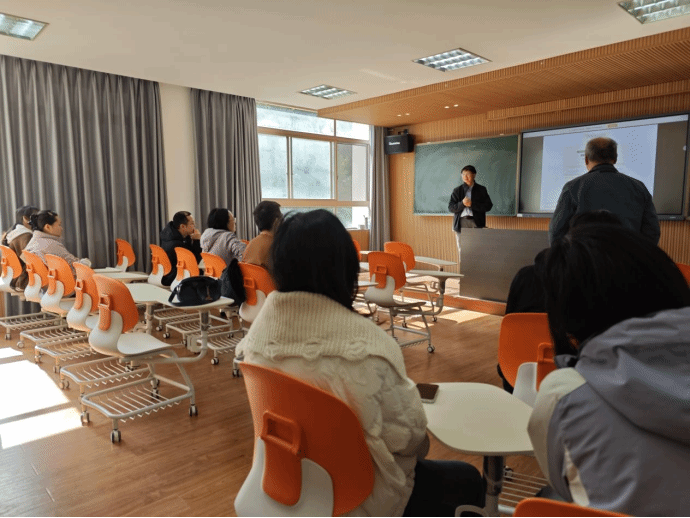 报告结束后,蒋庆堂教授与我院师生展开了深度充分的学术交流。师生们围绕时变参数的优化设计、Chiplet 变换的技术实现细节、信号分离理论在机械工程中的拓展应用等多个议题踊跃提问,蒋教授耐心倾听每一个问题,结合自身研究经验进行细致解答与深入探讨。在一来一往的思想碰撞中,师生们对信号分离领域的前沿动态与实践应用有了更清晰的认知,现场学术氛围热烈浓厚,有效激发了师生们的科研热情与探索动力。