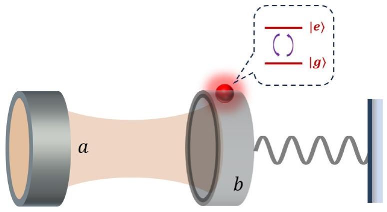 为了解决这一难题,数理学院固态混合量子器件团队的熊伟副教授联合浙江大学博士后刘刚博士共同提出一种巧妙的混合系统构型:将一个量子比特(如超导量子比特)与一个机械振动模式耦合,构成一个量子拉比模型;同时,该机械模式再通过辐射压力与一个光学腔耦合,形成光力学子系统。通过将光学腔工作在“色散区域”并施加外部驱动,研究人员得以“绝热消除”腔场自由度,从而在有效哈密顿量中不仅保留了标准的量子拉比相互作用,还引入了一个可调控的人工A2项。有趣的是,这个人工A2项可以与系统中固有的A2项相互抵消。通过调节光力学耦合强度或腔场失谐,研究人员可以主动控制抵消效果,甚至实现完全消除,从而恢复系统发生超辐射相变所需的“模式软化”条件。这相当于在理论上“绕过”了不可行定理的限制。