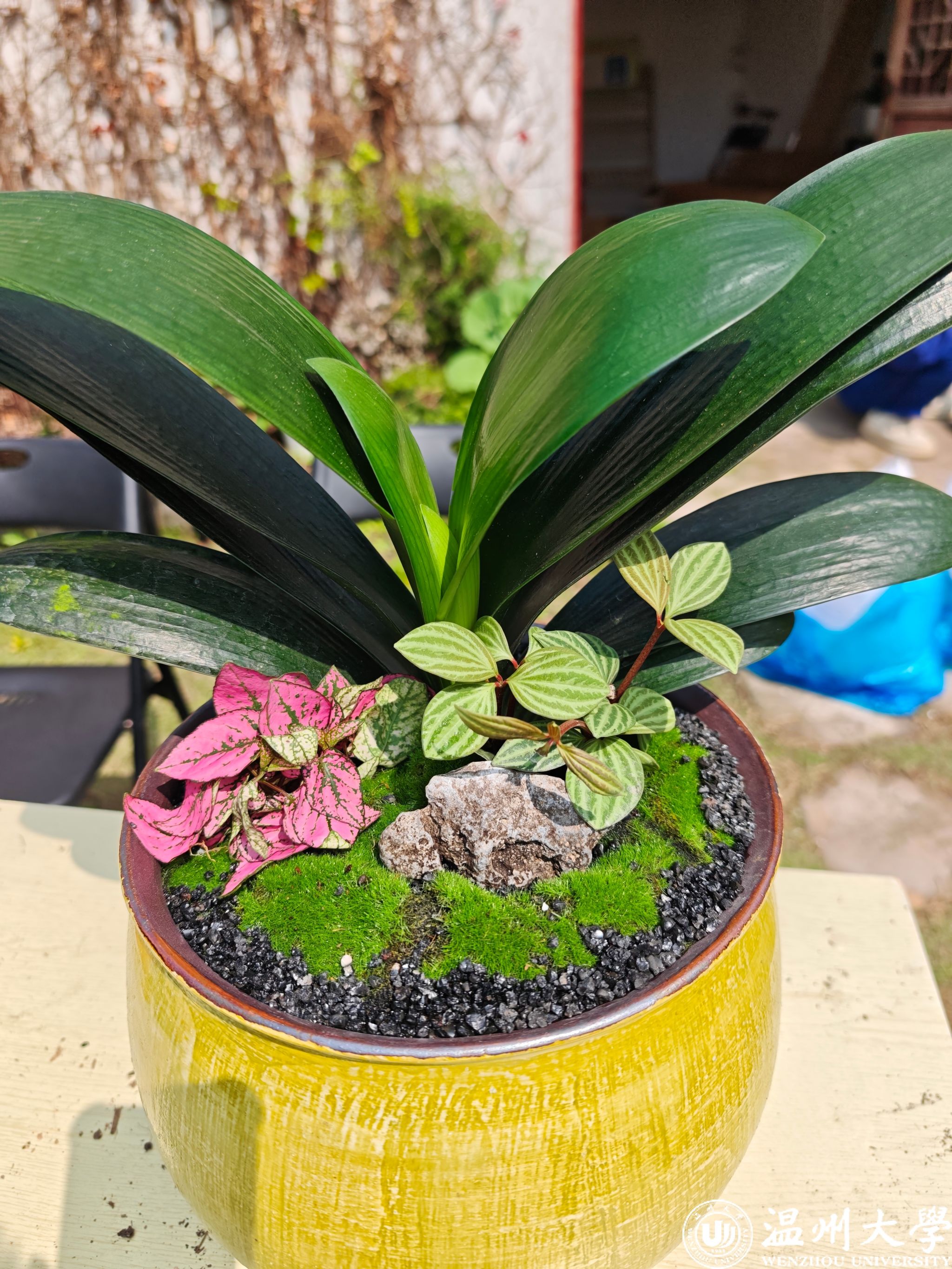 活动现场,温大苗圃的工作人员为大家细致讲解了盆栽设计的美学逻辑与种植养护要点。讲解结束后,女教职工们纷纷化身“园艺设计师”,从搭配盆土,构思造型到定植装饰,每一步都饱含巧思。发财树的挺拔、长寿花的明艳、君子兰的雅致、朱蕉的热烈,在大家的妙手组合下,变成了一盆盆独具匠心的鲜活作品。