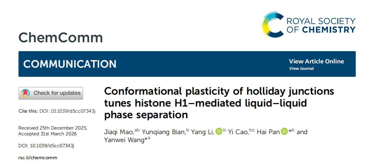 该课题组在生物大分子液-液相分离(LLPS)领域取得重要研究进展,相关成果分为理解染色质组织及DNA结构动态调控机制提供了新视角。