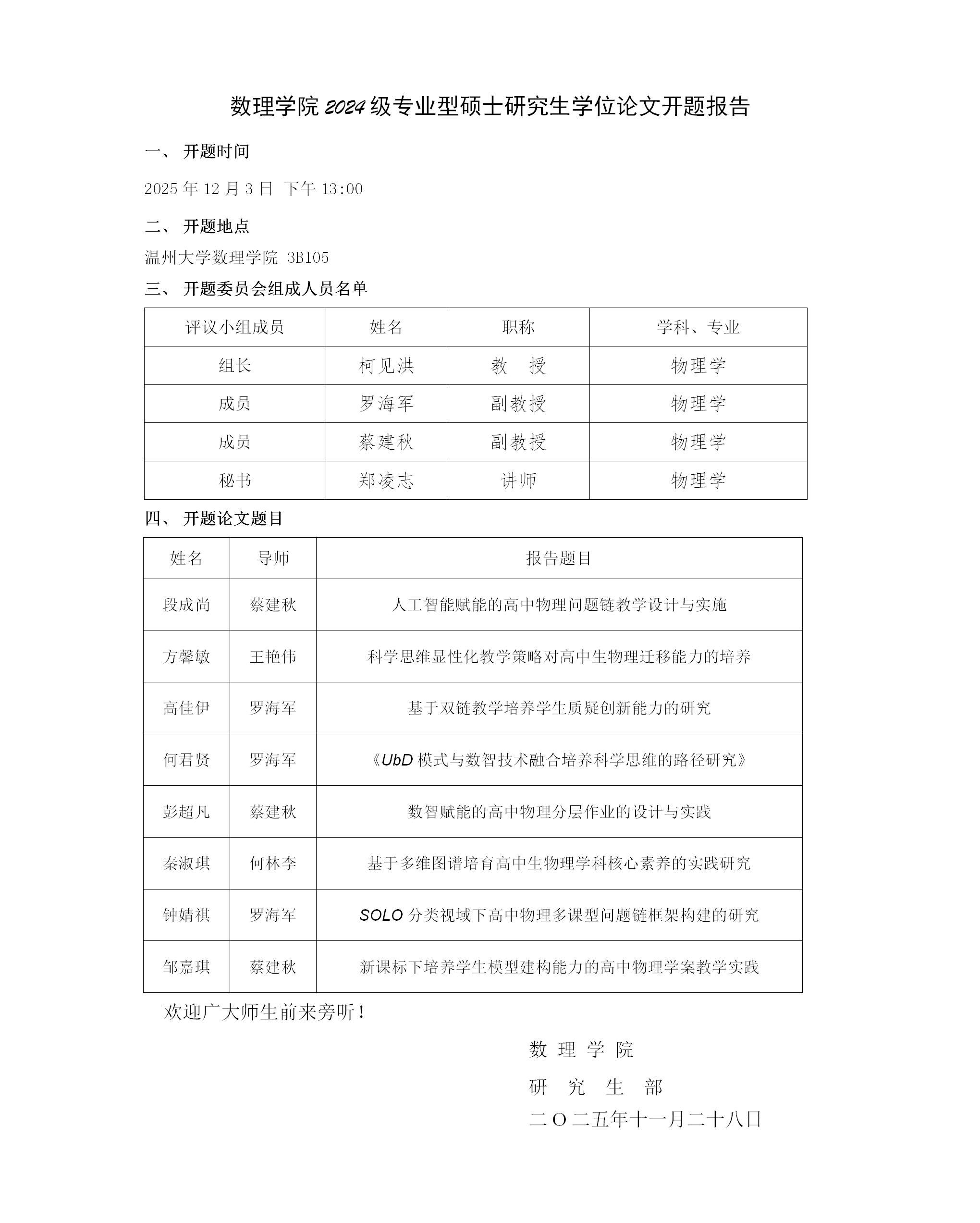 数理学院2024级学术型硕士研究生学位论文开题报告(物理学)
