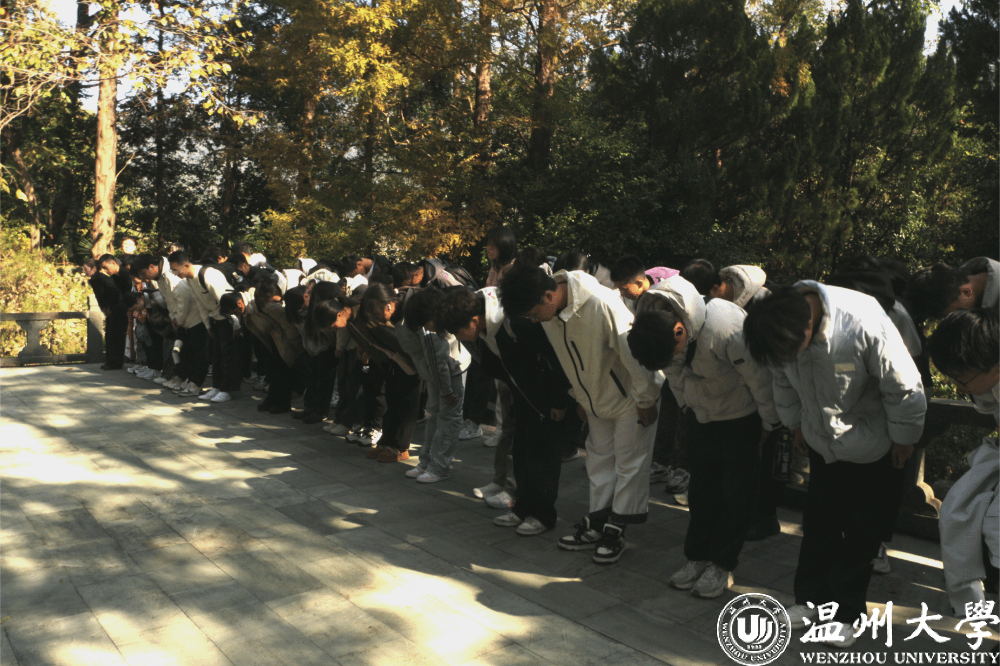 清晨的阳光为巍峨的红十三军纪念碑镀上金边,气氛庄重而肃穆。学子们列队肃立,向长眠于此的革命先烈深深鞠躬,不仅是缅怀其为温州大地解放事业立下的英勇功绩,更是致敬其一生清廉的崇高品格。每一朵敬献的白菊,都承载着对先烈“不拿群众一针一线”纪律作风的敬仰;每一次驻足凝视,都在感悟他们“为理想甘于清贫、为信仰坚守底线”的浩然正气。这一躬,是对革命先辈廉洁奉公精神的追思,是对温州红色文化中清廉基因的传承,更是学子们“永葆清廉本色、扎根温州奉献”的郑重承诺。