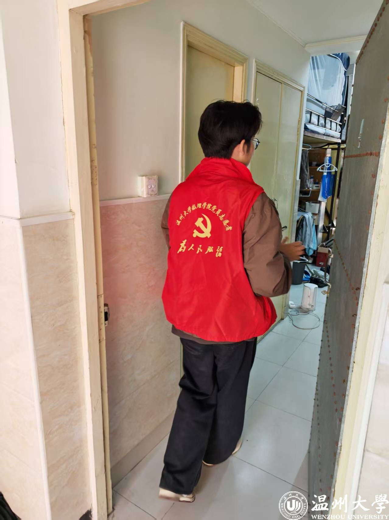 为筑牢学生社区安全防线,营造安全、文明、和谐的住宿环境,数理学院研究生会生活部于2026年3月18日组织了宿舍安全卫生检查。本次活动由刘伦伦老师与生活部成员、25级安全委员共同参与,对学院学生宿舍内的用电安全、环境卫生等方面进行了全面细致的排查。