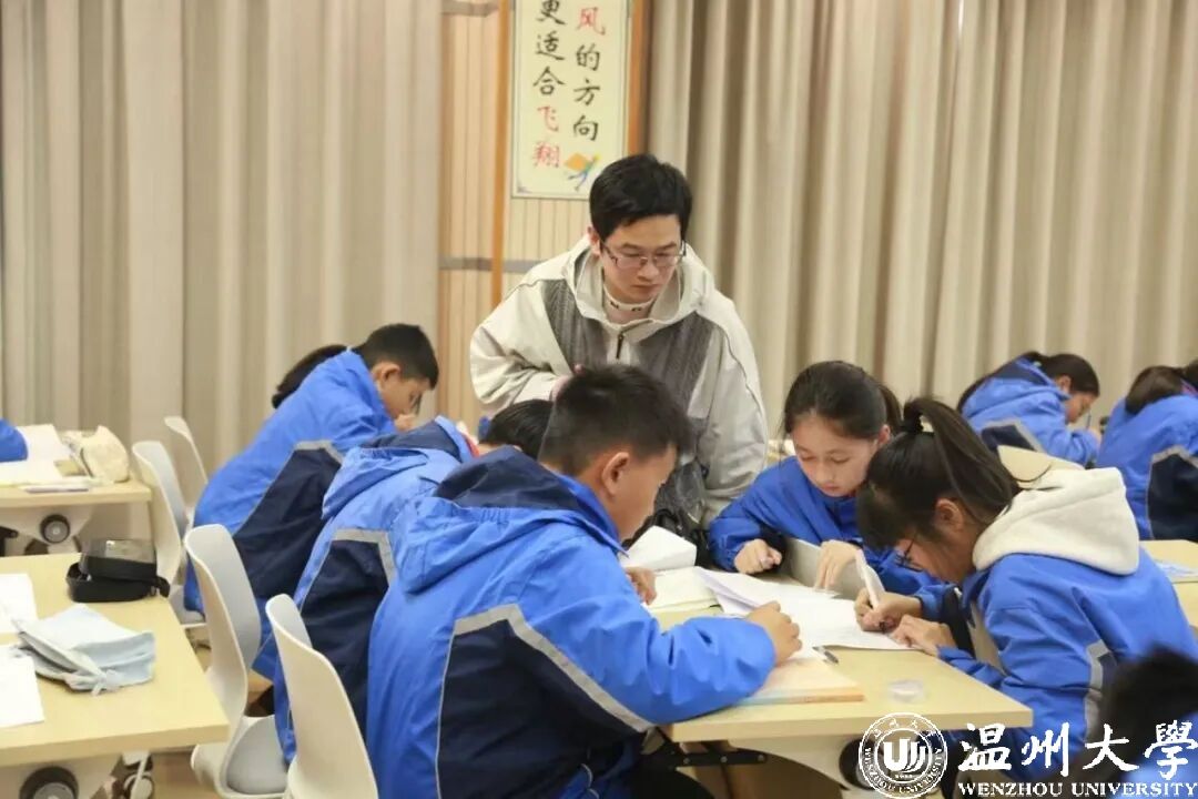 在温大的四年,勤奋是刻在他骨子里的习惯。比起高中的轻松,大学的学习非但没让他觉得累,反倒越学越有劲头。回头看大学时光,他的每一步都走得踏踏实实。大一那年,他主动加入了学院的“0+1创业工作室”的市场拓展部,就想借着和外界打交道的机会,把自己练得更扎实;大二时,他转身竞选班长,带领班级获评全校“优良学风班”,在活动组织中进一步锤炼自己;大三时,他当上了数理学院学生会团委副书记,牵头办了洪殿敬老院20周年的主题活动,不光请到了当时的省团委书记来出席,之后更是每月都带着同学们前往敬老院,为老人们打扫卫生、陪伴聊天。这份扛在肩上的责任感,往后也一直牵着他往前走。除此之外,他也将目光投向未来,一边准备考研,一边深耕师范生技能,两条路并行的日子忙碌却充实。