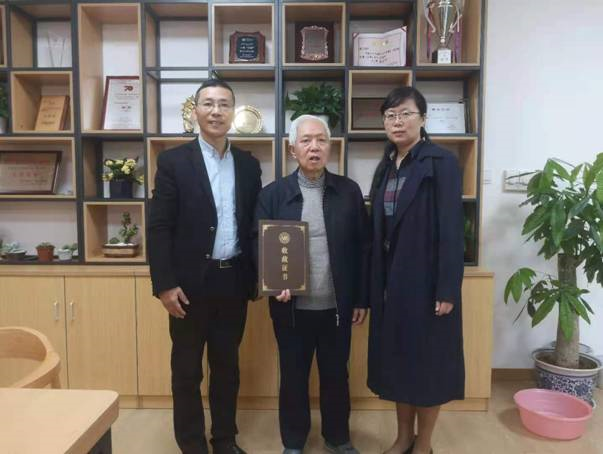 谷晓明老师在谷超豪先生老宿舍前接受温州大学《收藏证书》