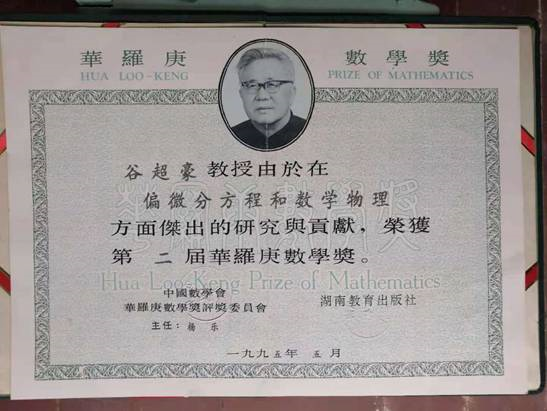 谷晓明老师捐赠的谷超豪先生获奖证书(复制版)